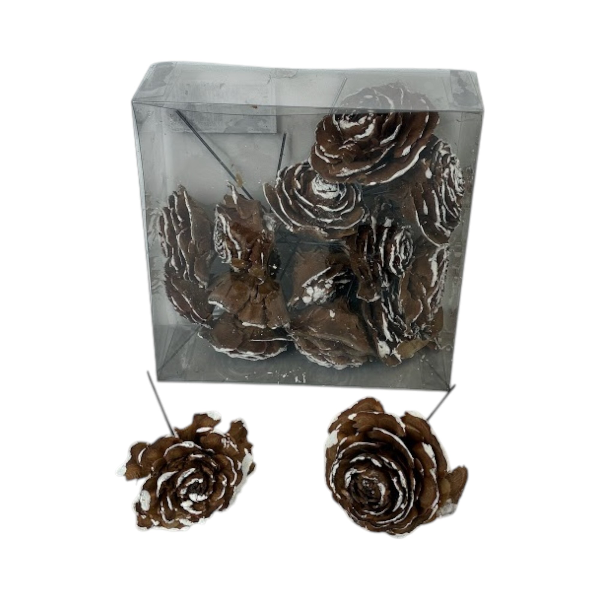 Cedar rose på wire, dia. 4-6 cm, hvite spisser (15 stk.)