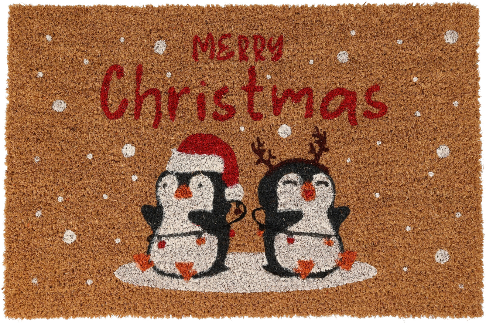 Dørmatte av kokos med julemotiv av to pingviner 39 x 59 cm.