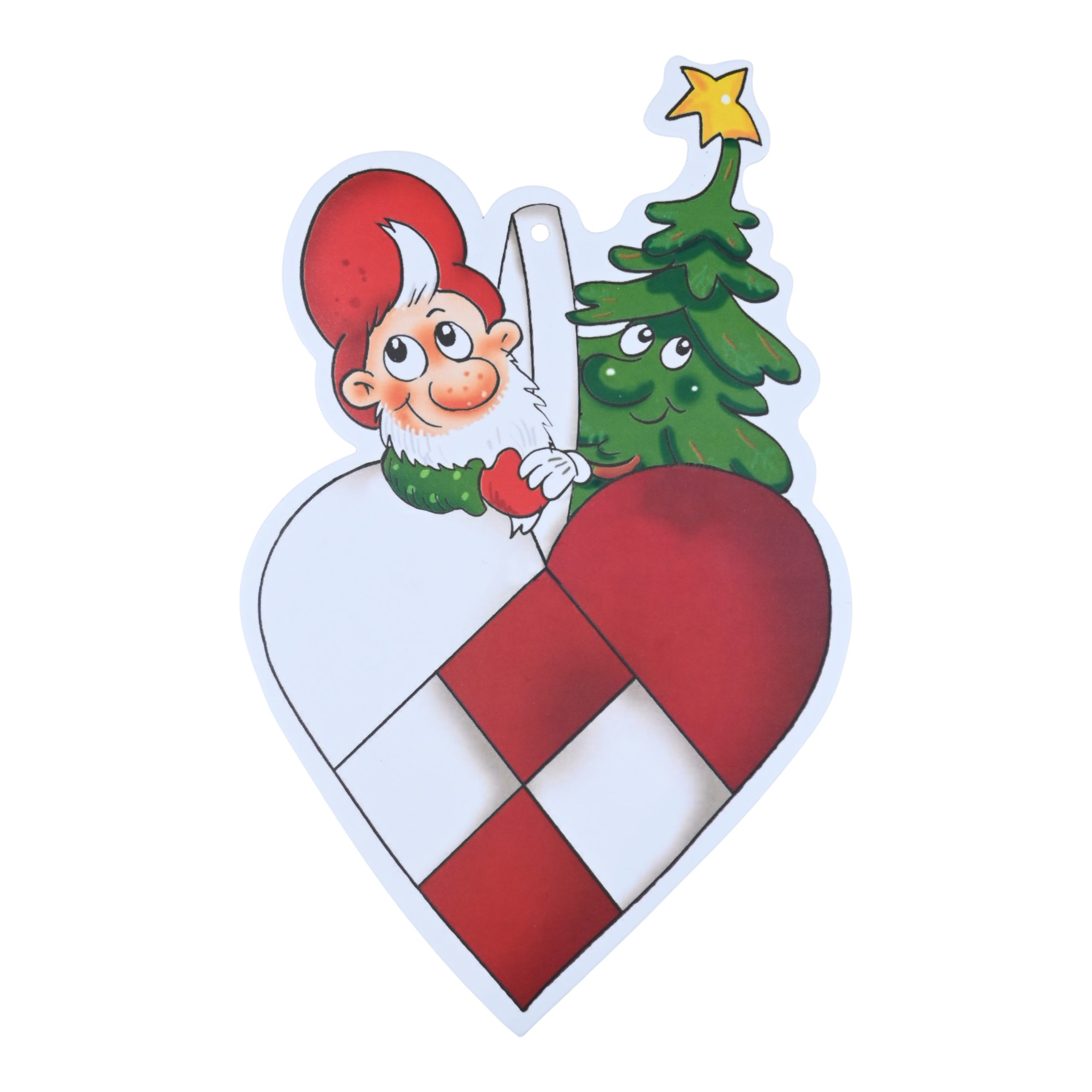 Store gavemerker i kartong med Julius i julehjerte til julegaver. 8 stk. til og fra kort på 17 x 12,5 cm. Metalsnor medfølger. Figurformet 250 gsm. papir som er kraftig kartong. Gavemerkene kan også brukes til oppheng som en slags kravlenisse.