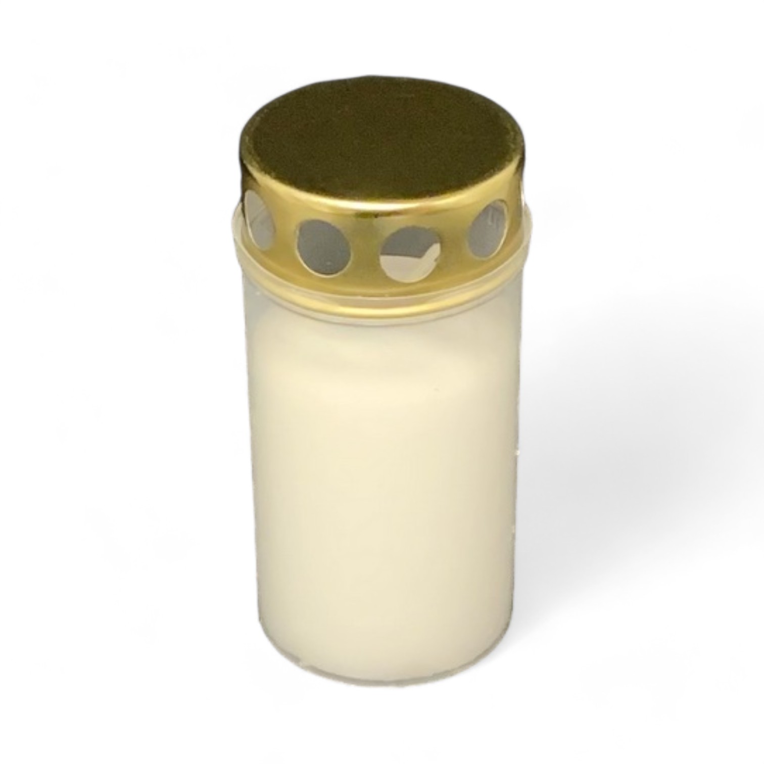 Gravplasslys hvite m/gullokk- gravplasslys 1 stk. m/lang brenntid