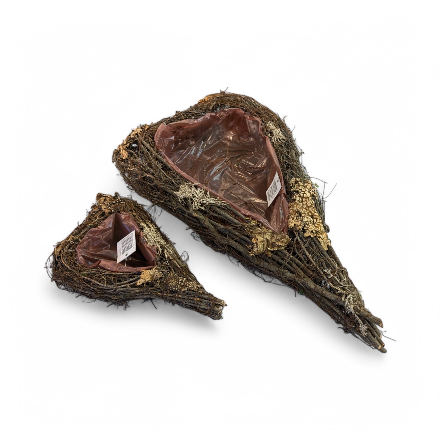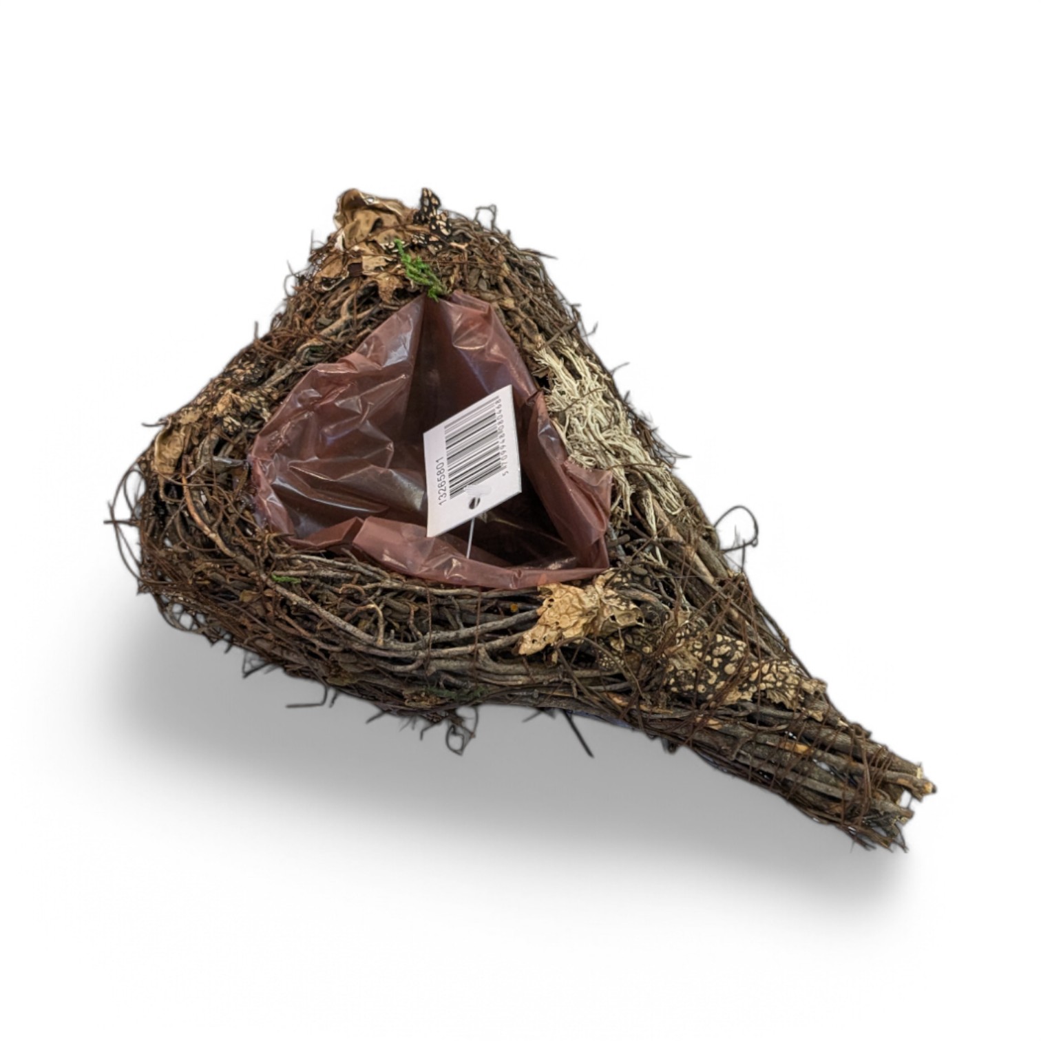 Lite naturhjerte med bark og hull til pynt. Hjertet måler 15 x 22 cm. Høyde 6 cm. Diameter på hullet, 7 cm. Hullet er sentralt plassert og med plastikk. Hjertet er enkelt å pynte med bær, takløk eller en krøllesløyfe i den tilhørende PVC-hulningen. På denne måten kan du sette ditt eget preg på utformingen av din pynt, uansett om det er til pynt i hjemmet, på din dør eller på kirkegården. Du kan finne flere varer til dekorasjonher.