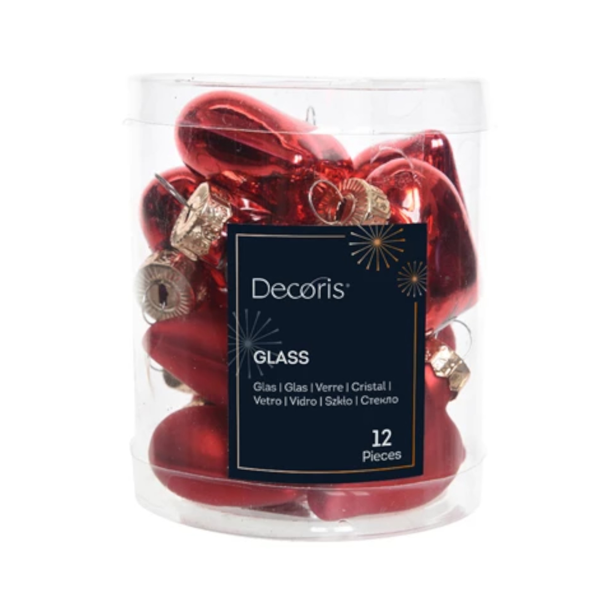 Det største utvalg av glass julekuler, juletrepynt til billige priser finner du her. F.eks. denne boksen med ensfargede blanke og matte røde julehjerter i glass diameter 4 cm. Leter du etter nye julekuler, så har du funnet det riktige stedet. Julekuler brukes mest til å henge på juletreet, men julekuler i alle størrelser brukes også til å henge opp i vinduer og som pynt i juledekorasjoner og adventskranser. Klassiske julekuler er veldig populær juletrepynt, og både julekuler i glass og julekuler i plastikk anvendes på juletrær. Da glasskuler er blåste glasskuler, kan diameteren svinge +-5%. De julekuler i glass, som vi selger, er maskinfremstilte glasskuler, hvilket betyr at mindre skjønnhetsfeil i sjeldne tilfeller kan forekomme. Dette er generelt for alle glasskulefabrikker. Her på nettbutikken Alttiljul.no har vi ett av Danmarks største utvalg av julekuler. Vi har et kjempesortiment av julekuler i plastikk både med dekorasjon og ensfargede julekuler og vi har et kjempeutvalg av glasskuler til jul også både med dekorasjon og som ensfargede julekuler. Her på Alttiljul.no kan du kjøpe dekorerte julekuler i forskjellige populære serier av julepynt som f.eks. Christmas Moments og Apoteker Nissen. Disse typer julekuler finnes både som plastikkuler og som glasskuler. I tillegg finner du på vår nettbutikk mange andre forskjellige pakninger av julekuler med dekorasjon. Du finner morsomme julekuler, annerledes julekuler, tradisjonelle julekuler, julekulefigurer og vi har rykte for å selge billig julepynt og billige julekuler men også flott julepynt og juletrepynt. Kjøp julepynt til ditt juletre her. Vi har juletrepynt til enhver smak og stil, uansett om du ønsker gammeldags julepynt, nostalgisk julepynt, retro julepynt, moderne julepynt eller julepynt i de helt nye og trendy farger. Vi har også de smarte små metallkroker, som gjør det enkelt å henge julekuler på juletreet. Du kan få dem i sølv, gull og grønne. Julekuler brukes også til annet enn å henge på juletreet. Man kan også henge dem opp i vinduene, så de pynter både når man ser dem inne- og utenfra. Det er også veldig dekorativt å henge en trollgren opp, evt. med en liten batteri lyslenke på, og så pynte trollgrenen med julekuler i forskjellige farger og størrelser. Julekuler er også fine som pynt til juledekorasjoner eller adventskranser.