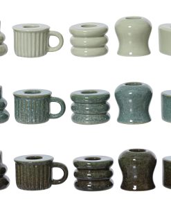 Lysestaker i blankt porselen til stakelys/kronelys i 5 forskjellige former i GRØNN/PETROLEUM. 5 forskjellige i sett. Passer perfekt som pynt i stuen såvel som et dekorativt element til borddekningen. Former som kjegle, kopp, rillet, buet og hjerte. Høyde: 5 cm. Diameter: 5 cm. Farge: petrolgrønn. Passer til kronelys og stakelys med diameter 2,2 cm. Fås i flere farger i samme former.