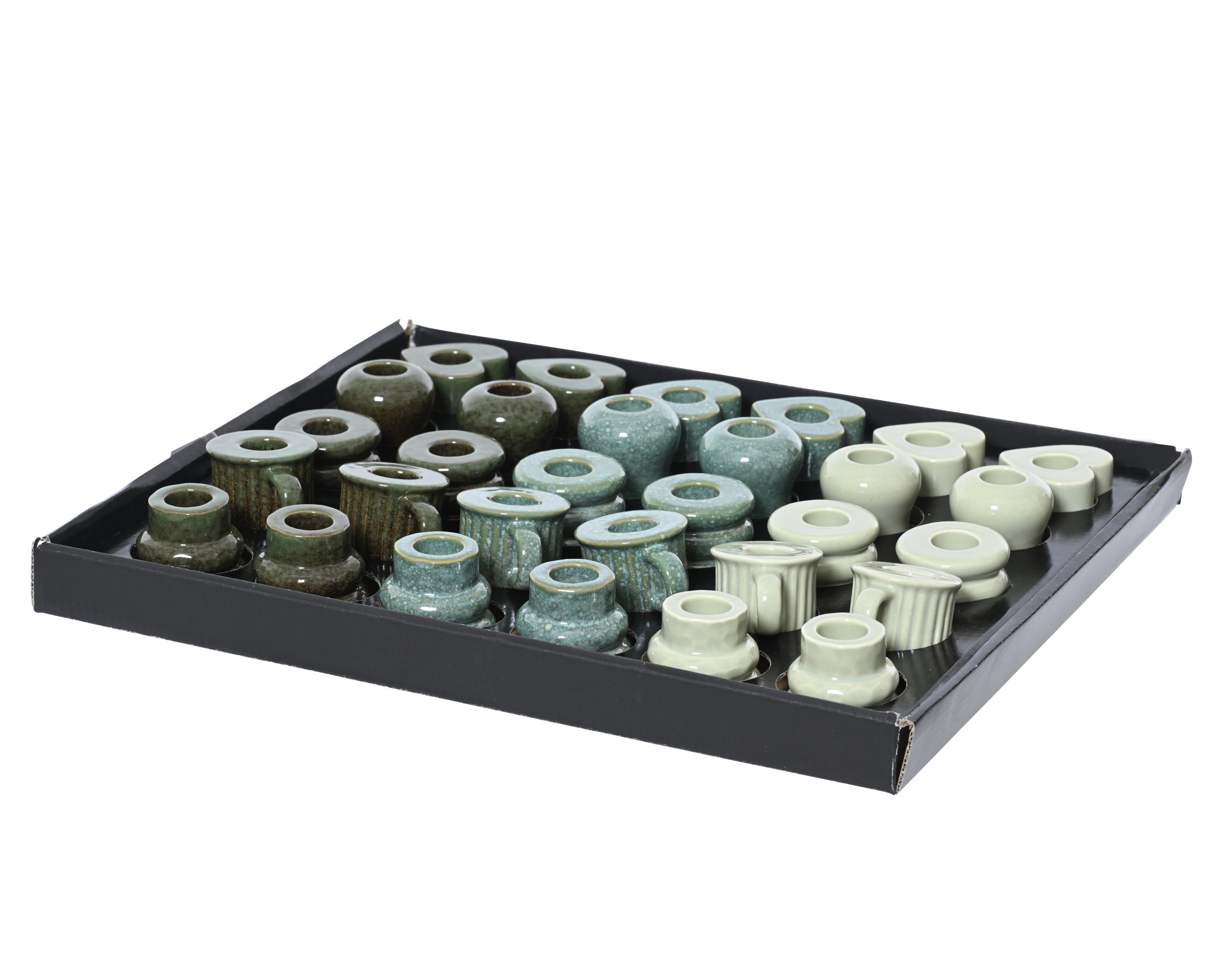 Lysestake til stakelys/kronelys 2,2 cm. GRØNN/PETROLEUM porselen. 5 stk. i sett.