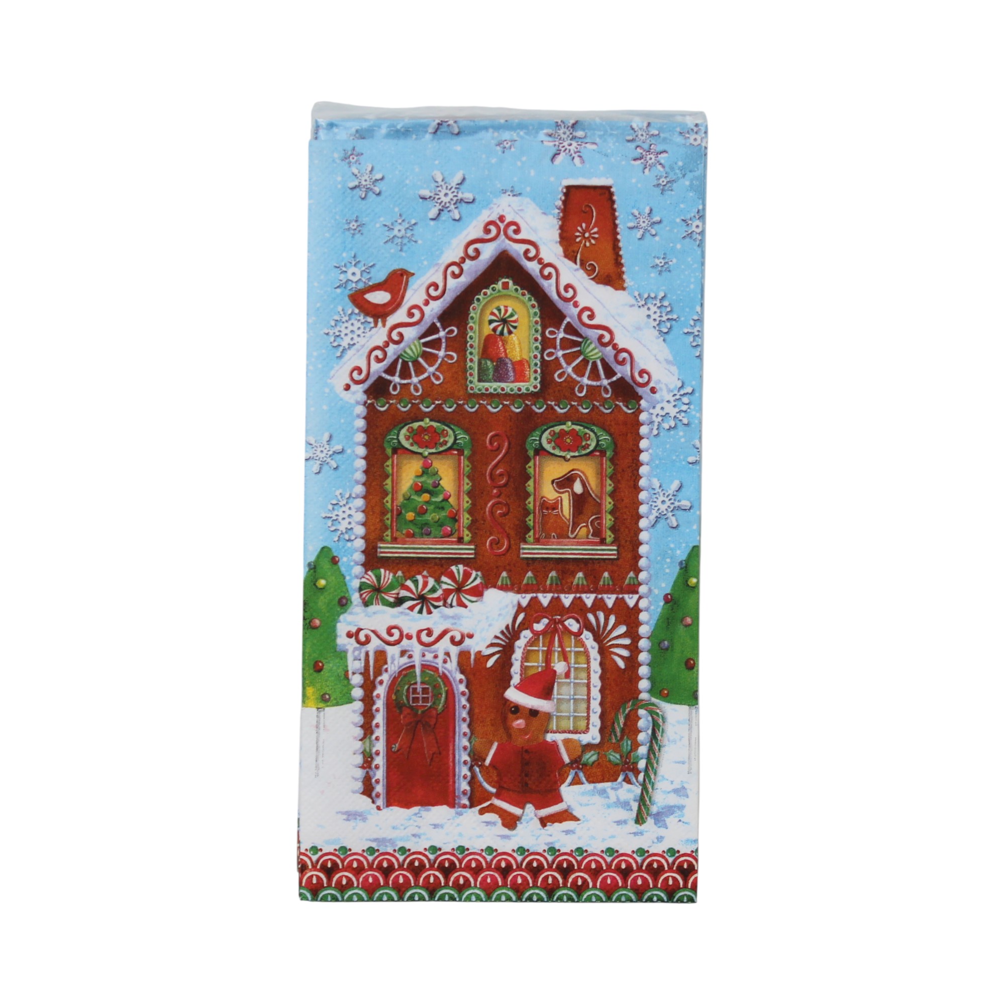 Middagsservietter (SMAL MODEL) til jul, honningkakehusmotiv (16 stk.)