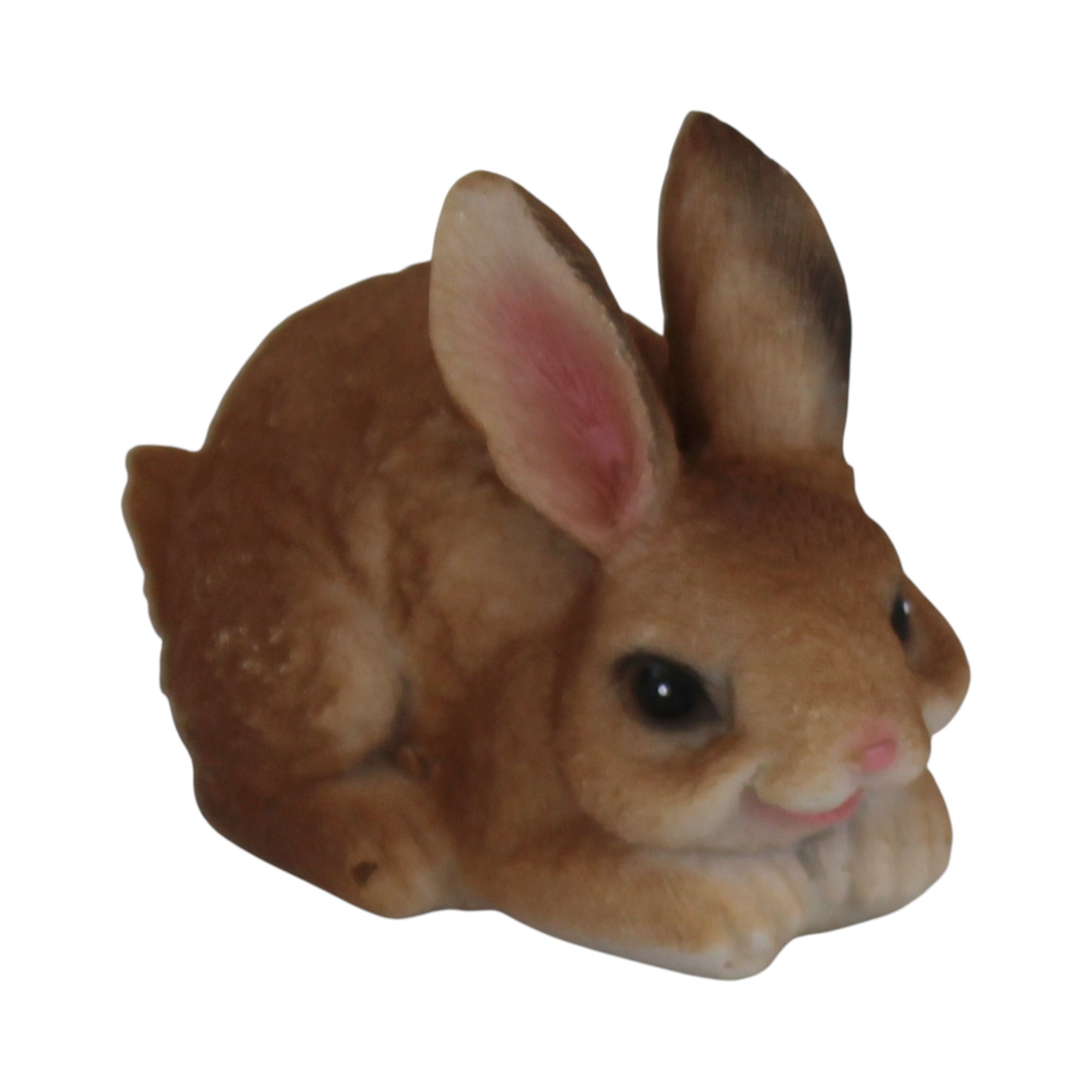 Figuren måler 6 cm i høyden og er 7,5 cm i lengden. Påskekanin i polystone.