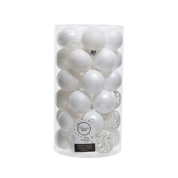 Plast julekuler til juletreet, HVIT 37 stk. Ø6 cm. – juletrepynt
