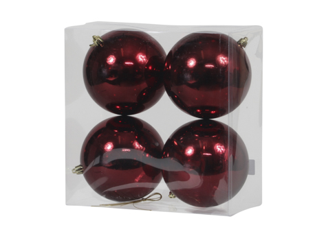 Plast julekuler til juletreet, MØRK RØD blanke 4 stk. Ø12 cm. – stor julekule