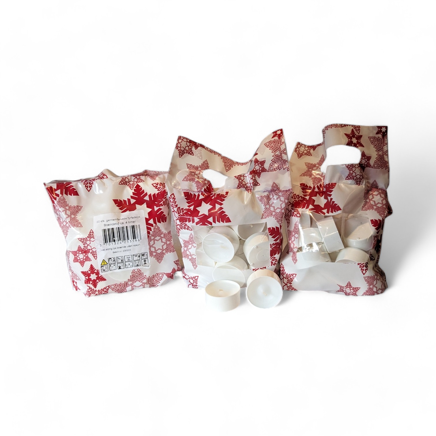 Stearinlysene er en av våre store artikler. Hvert år selger vi ca. 20 tonn stearinlys. Vi har et enormt utvalg av kvalitets-stearinlys opptil 70-80% under normal butikkpris. Vi oppkjøper overskuddsproduksjoner, utstillingspaller, «lykkepaller» og utvalgte varer fra dansk anerkjent lysfabrikk, så kvaliteten på lysene er 1. kvalitet helt i topp selv om våre priser er helt i bunn. Stearinlysene er dansk produserte og testet for toppkvalitet i brennetid og sotedannelse.
