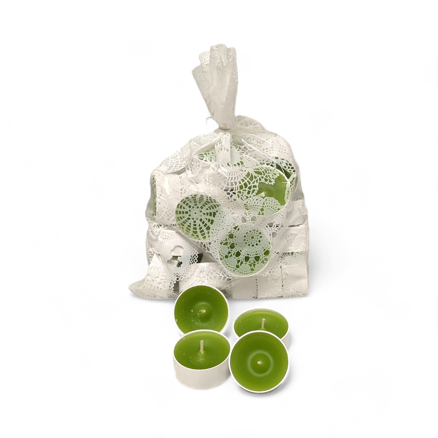 Meget flotte limegrønne telys, som du skal ha til fester. Kvalitets stearinlys og telys er vår spesialitet. Bestill online her med rask levering.