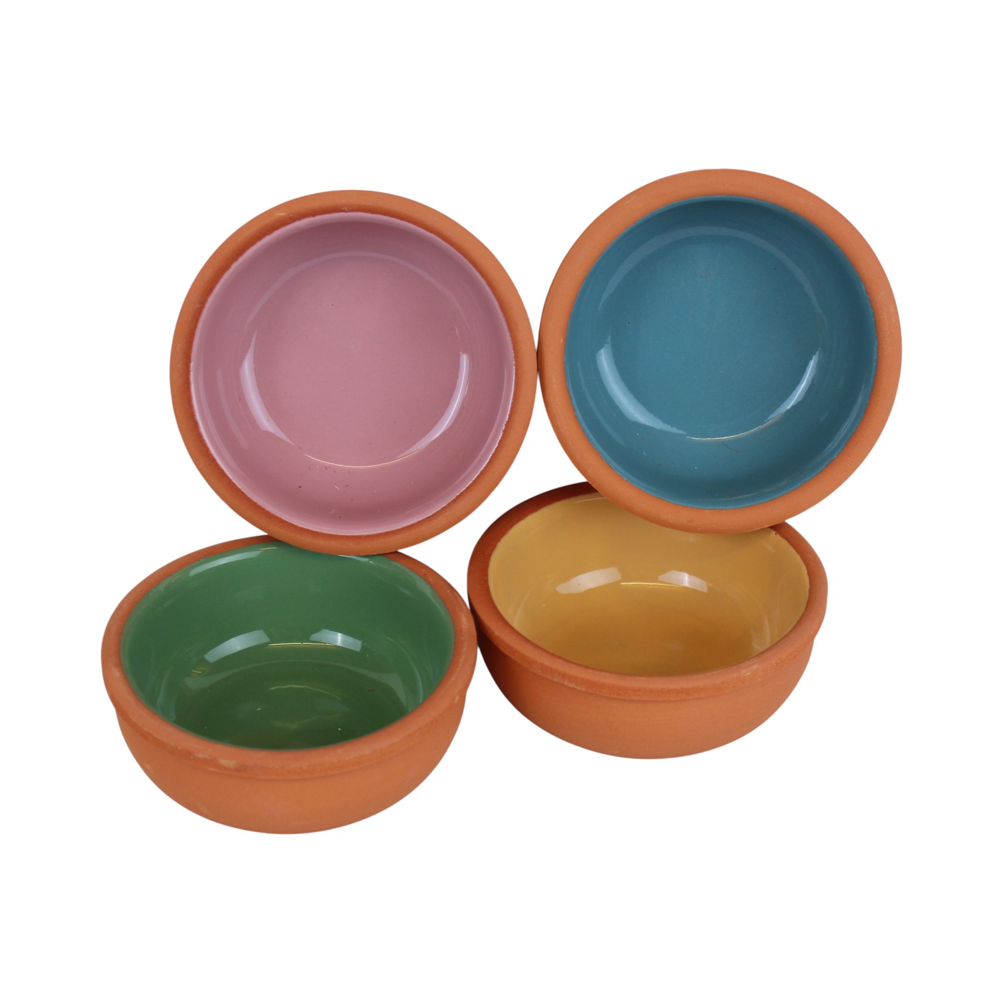 Terracotta skåler i 4 farger, 150 ml. (4 stk.)
