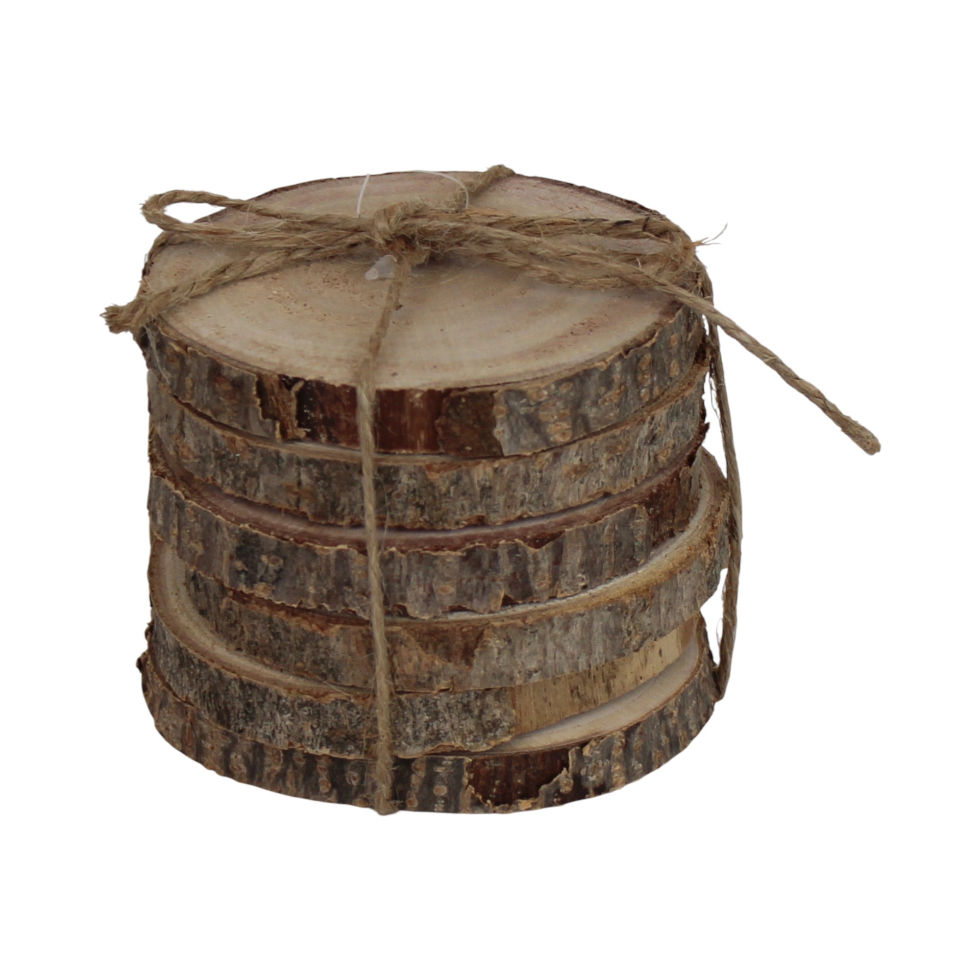 Treskiver 11 cm, drikkebrikker/coasters i naturtre (6 stk.)