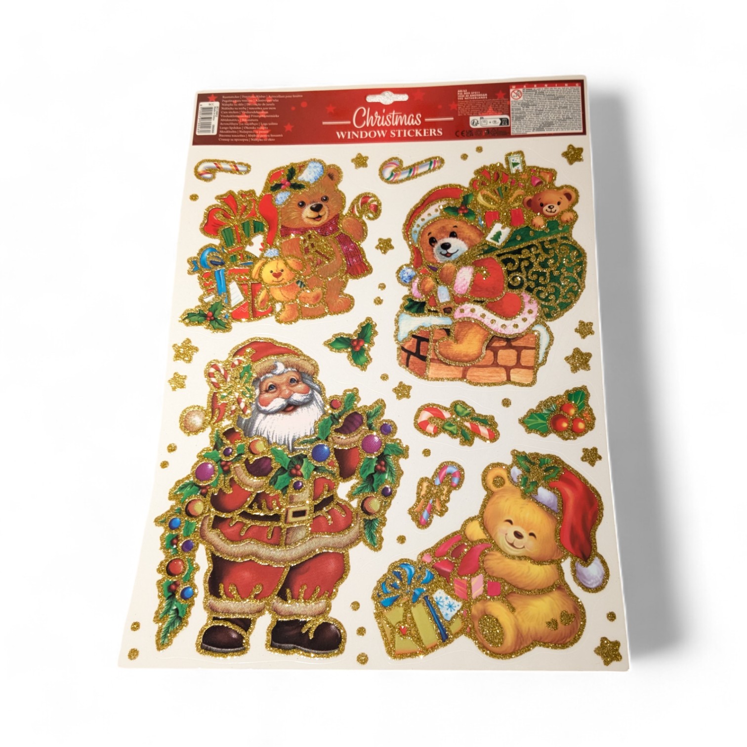 Vindusklistremerker, jule vinyl klistremerker med bamser og julenisse. Eksklusive X-mas glitterfigurer.
